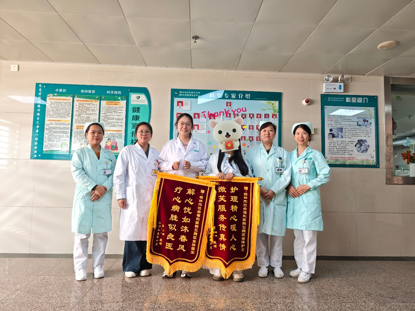 如今,王女士已逐渐回归正常生活,重新拥抱美好的人生。那两面熠熠生辉的锦旗,不仅是对医护人员精湛医术和温暖关怀的高度认可,更是桂林市社会福利医院五病区“医者仁心”精神的生动写照。在这里,医护人员用专业、奉献和温暖,为无数像王女士一样的患者撑起 “心”的保护伞,助力他们走出阴霾,向阳而生。